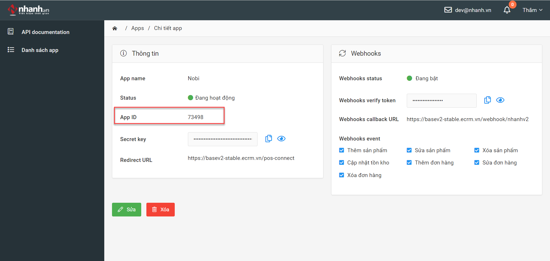 * AppId: Lấy mã App ID ở bên phần mềm Nhanh.vn v2