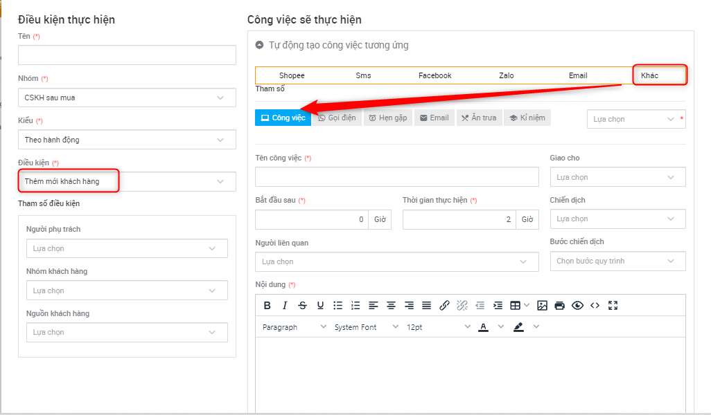 **Cách 3**: Tự động thêm công việc cho khách hàng khi thêm mới hoặc cập nhật khách hàng&#x20;